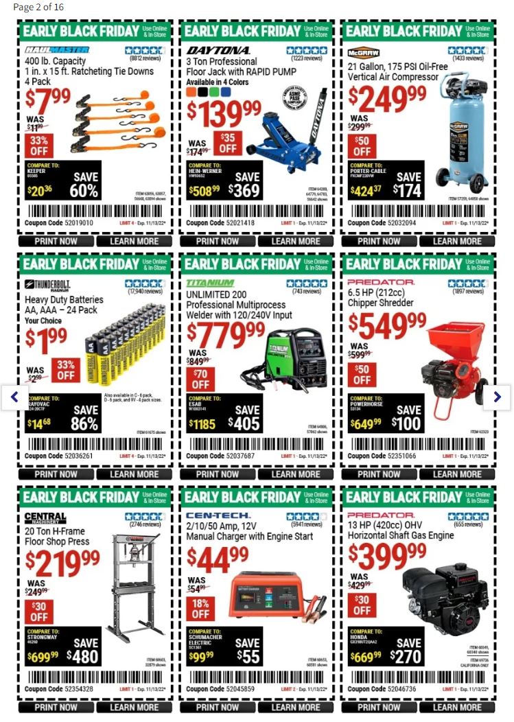 Members of the Inside Track Club can get Black Friday prices 2 days early, both online or in Harbor Freight stores.