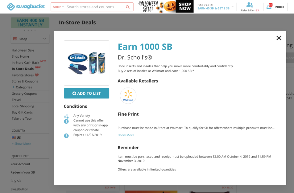 5. Visit the In-Store Deals page at Swagbucks.com
