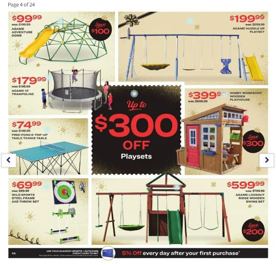 Academy Sports offers hot deals for its Black Friday sale. Find amazing Black Friday prices for outdoor gear, swingsets and playsets, trampolines, bikes, fitness equipment, apparel, hunting gear, sports gear, exciting doorbuster deals, and much more.