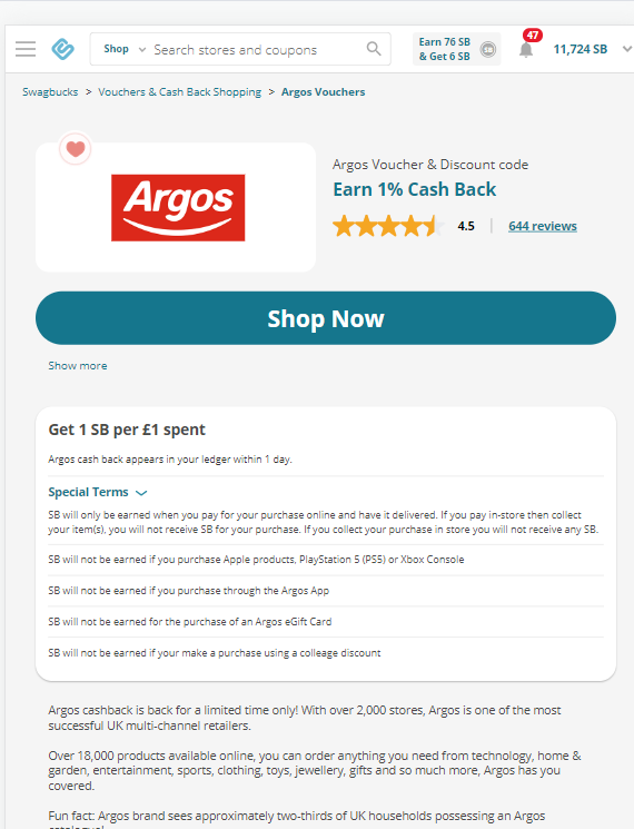 And you can sweeten the savings with Swagbucks. Swagbucks offers free cash-back rebates on your Argos purchases and free Argos voucher codes. This is free cashback on top of great deals.