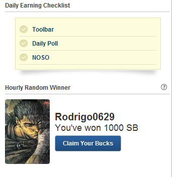 TSG wants to give you 1,000 Swag Bucks. How am I going to do that? By making you the Hourly Random Winner! For our more green Swaggernauts who may not be all that familiar with the Hourly Random Winner, let me explain. Every hour, a Swagbucks user is selected at random and announced on the homepage. If it’s you, be sure to click on the announcement within the hour, and you’ll be rewarded with 1,000 Swag Bucks. Yes, it’s as simple as it sounds. The notification box is located on the right side of the Swagbucks homepage, underneath your Daily Earning Checklist: