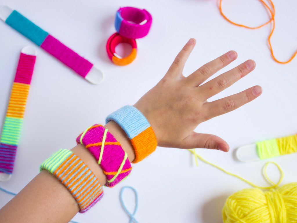 - Test out your cool new slap bracelets. They still “slap” perfectly with the addition of the yarn!