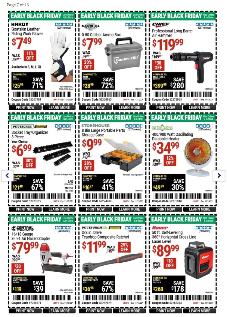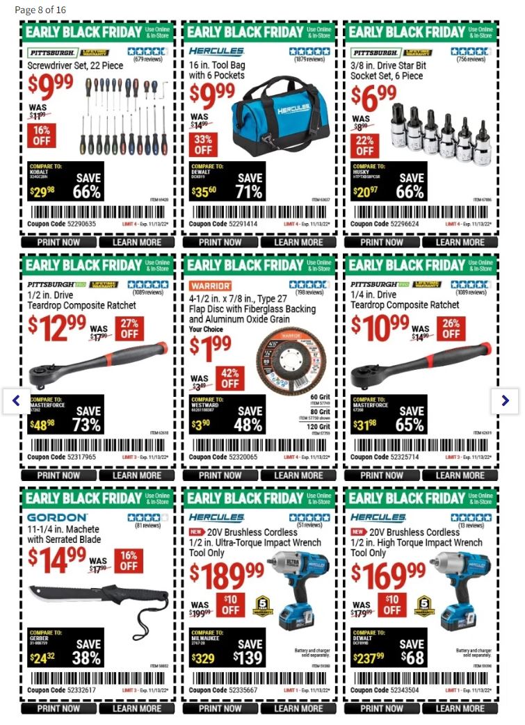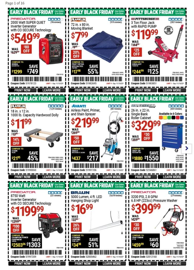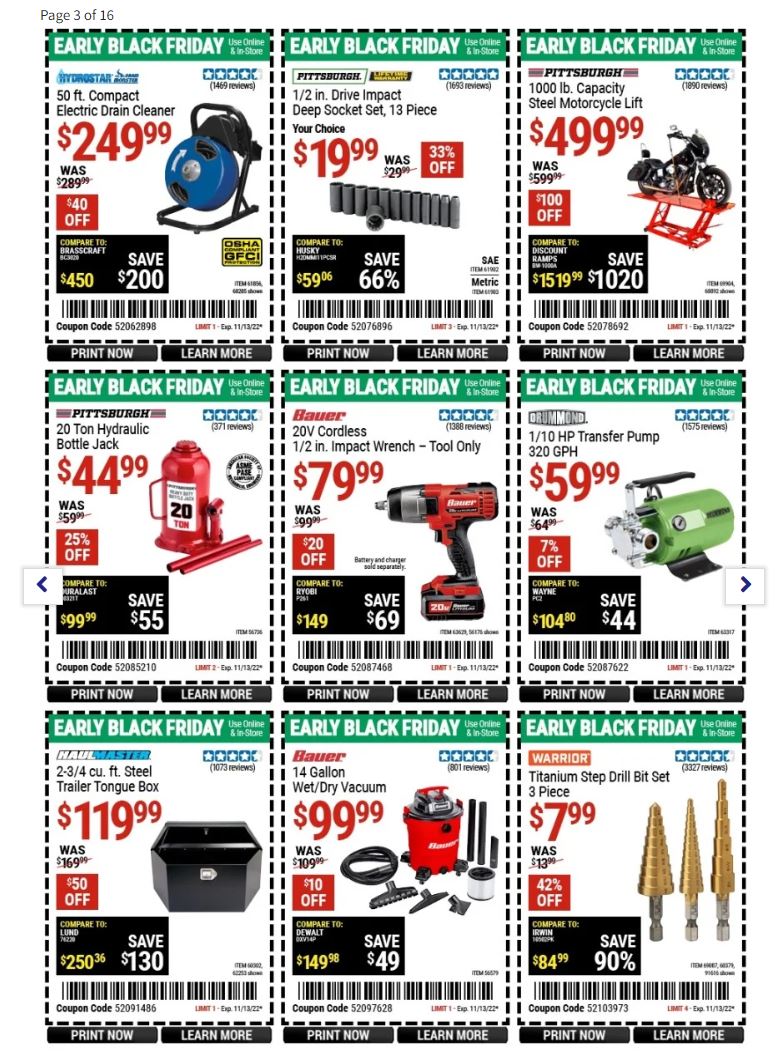 Members of the Inside Track Club can get Black Friday prices 2 days early, both online or in Harbor Freight stores.