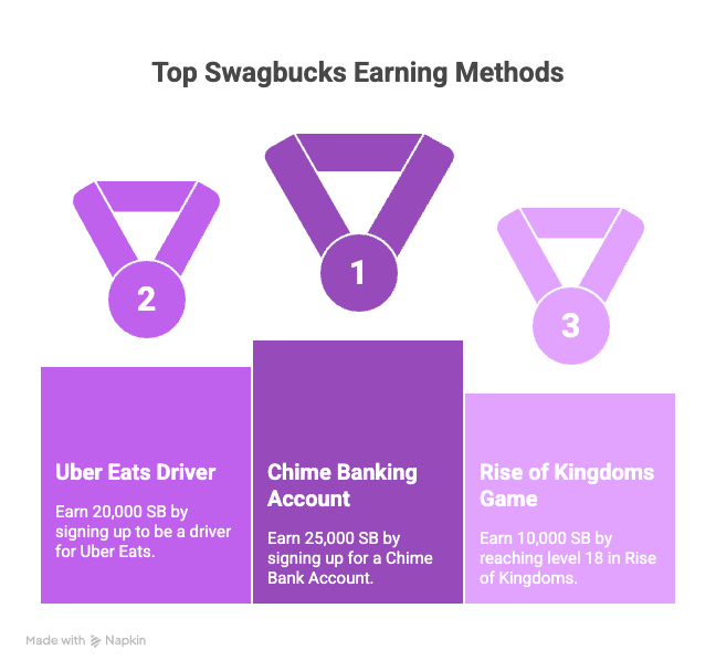 - When you sign up to be a driver for Uber Eats through Swagbucks you’ll earn 20,000 Swagbucks. Not only will you be paid for delivering food and completing orders, but you’ll also earn Swagbucks rewards towards your next free gift cards!