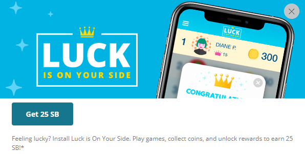 - Play “Luck is On Your Side”, a fun coin-collecting app game. Signup with valid info, and get 25 SB.
