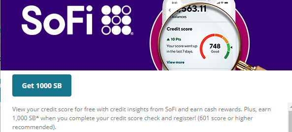 Get your free credit score from SoFi. Get your free score and credit insights, plus earn 1,000 SB ($10) when you complete your score check and register. Get SoFi now.