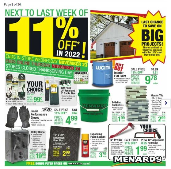 Again, these are the dates and timelines we anticipate based on Black Friday over the past few years. Once the Menards Black Friday ads for 2022, are released, we will confirm these dates and times.