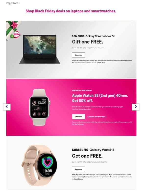 These T-Mobile deals were current at the time of the article’s publication and are subject to change. T-Mobile Black Friday deals, specifically for existing customers, have not been announced. Many of T-Mobile Black Friday deals are for new and current customers though. Bookmark this page and check back. As soon as their holiday season sale deals are announced, we’ll have all the details. Stay tuned!